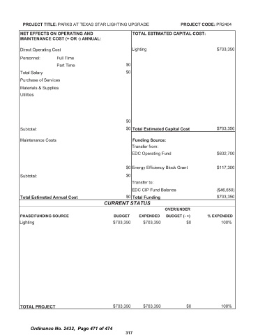 PROJECT TITLE: PARKS AT TEXAS STAR LIGHTING UPGRADE PROJECT CODE: PR2404
