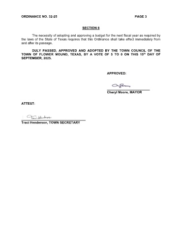 TOWN OF FLOWER MOUND, TEXAS, BY A VOTE OF 5 TO 0 ON THIS 15 DAY OF
