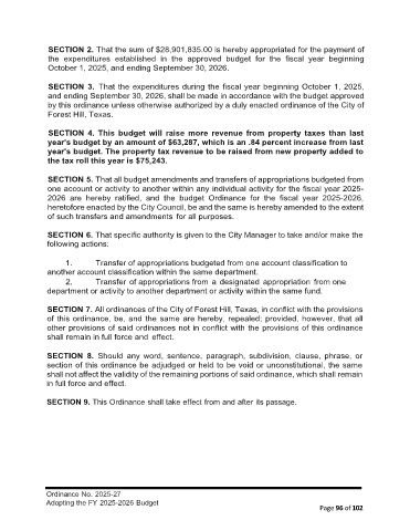 SECTION 7. All ordinances of the City of Forest Hill, Texas, in conflict with the provisions
