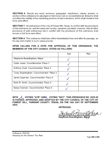 SECTION 7. All ordinances of the City of Forest Hill, Texas, in conflict with the provisions