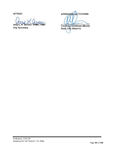 ATTEST: Amy L. A derson, TRMC, CMC City Secretary ' Ordinance 2025-29 Adopting the Ad Valorem Tax Rate Page 101 of 102