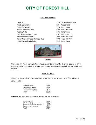 The Forest Hill Public Library is funded by a Special Sales Tax. The library is located at 6962