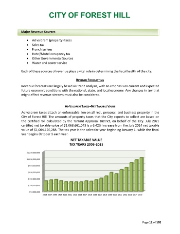 City of Forest Hill. The amounts of property taxes that the City expects to collect are based on