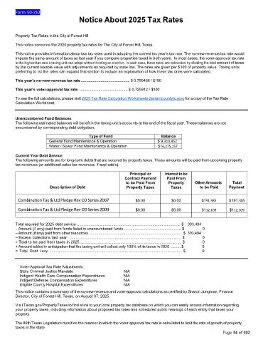 This notice concerns the 2025 property tax rates for The City of Forest Hill, Texas.