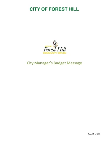 CITY OF FOREST HILL City Manager’s Budget Message Page 15 of 102