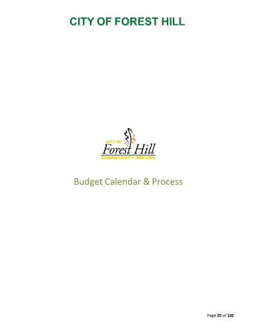 CITY OF FOREST HILL Budget Calendar & Process Page 25 of 102