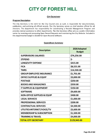Page 42 - CityofForestHillFY26Budget