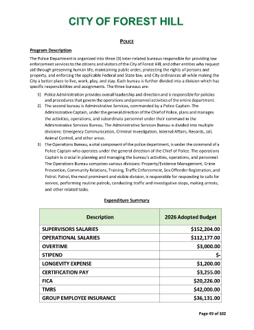 enforcement services to the citizens and visitors of the City of Forest Hill, and other entities who request