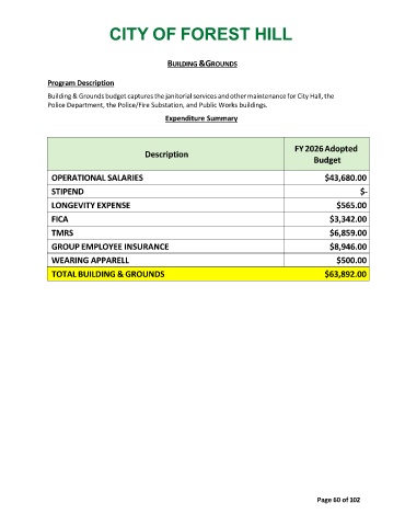 Building & Grounds budget captures the janitorial services and other maintenance for City Hall, the