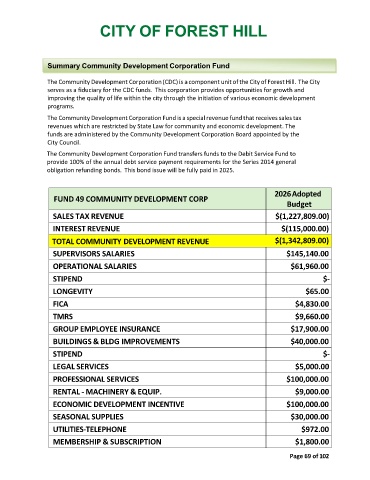 The Community Development Corporation (CDC) is a component unit of the City of Forest Hill. The City