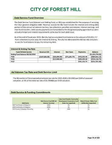 the City’s general obligation debt. Revenue sources for the fund include the interest and sinking (I&S)