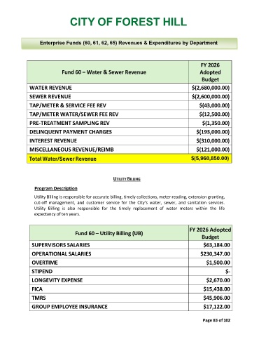 cut-off management, and customer service for the City’s water, sewer, and sanitation services.