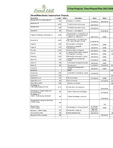 Street Name Length Width Description Street Water Sewer Completed 2023 2024 2025 2026 2027 2028 2029 2030