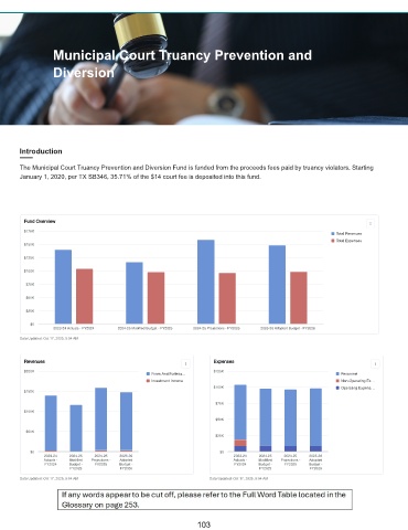 The Municipal Court Truancy Prevention and Diversion Fund is funded from the proceeds fees paid by truancy violators. Starting