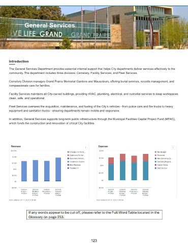community. The department includes three divisions: Cemetery, Facility Services, and Fleet Services.