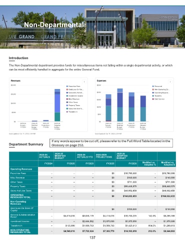 The Non-Departmental department provides funds for miscellaneous items not falling within a single departmental activity, or which