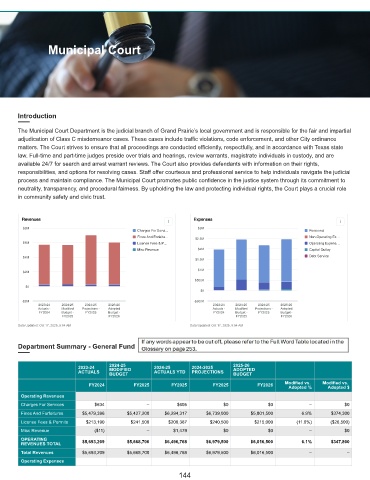 adjudication of Class C misdemeanor cases. These cases include traffic violations, code enforcement, and other City ordinance