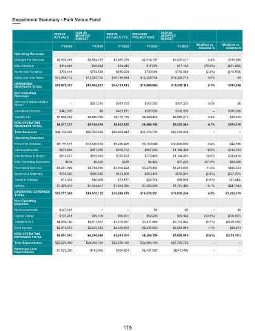 Department Summary - Park Venue Fund