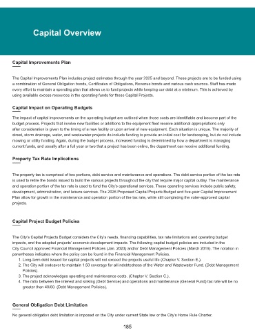 impacts, and the adopted projects’ economic development impacts. The following capital budget policies are included in the