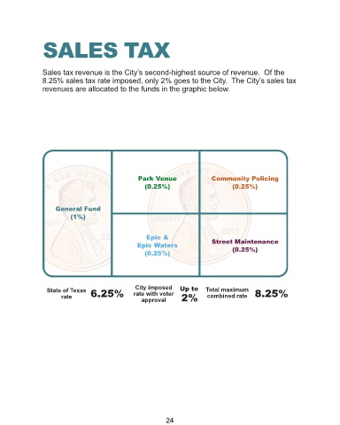 8.25% sales tax rate imposed, only 2% goes to the City. The City’s sales tax