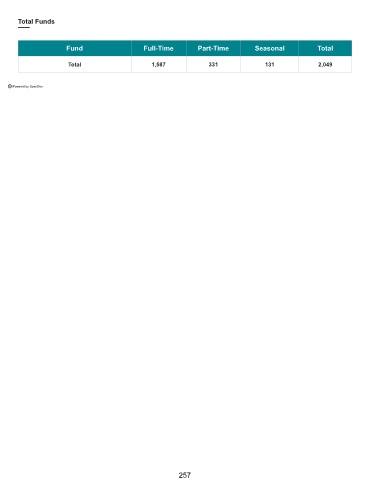 Total Funds Fund Full-Time Part-Time Seasonal Total Total 1,587 331 131 2,049 Powered by OpenGov 257