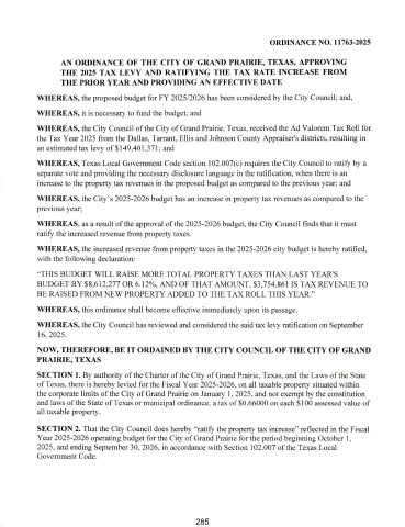 SECTION 2. That the City Council does hereby " ratify the property tax increase" reflected in the Fiscal