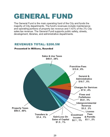 sales tax revenue. The General Fund supports public safety, streets,