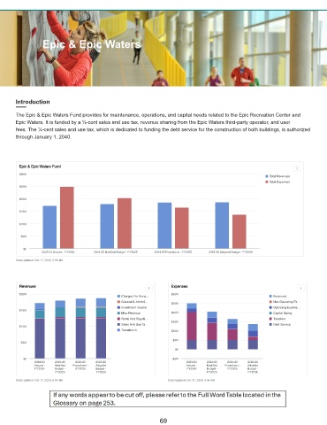 The Epic & Epic Waters Fund provides for maintenance, operations, and capital needs related to the Epic Recreation Center and