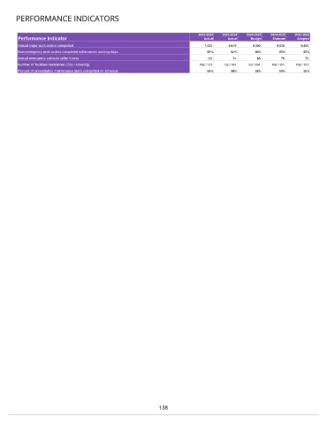 PERFORMANCE INDICATORS 138