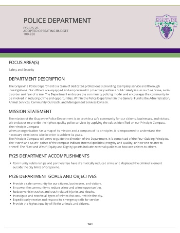 The mission of the Grapevine Police Department is to provide a safe community for our citizens, businesses, and visitors.
