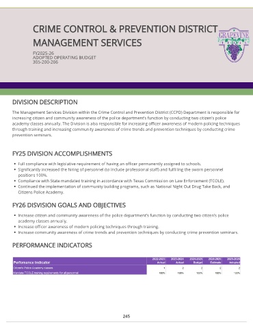 Page 250 - CityofGrapevineFY26AdoptedBudget