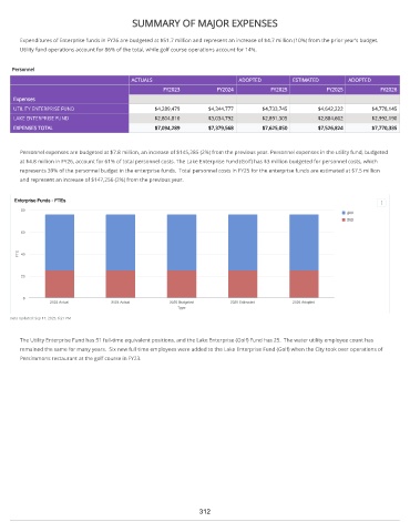 at $4.8 million in FY26, account for 61% of total personnel costs. The Lake Enterprise Fund (Golf) has $3 million budgeted for personnel costs, which