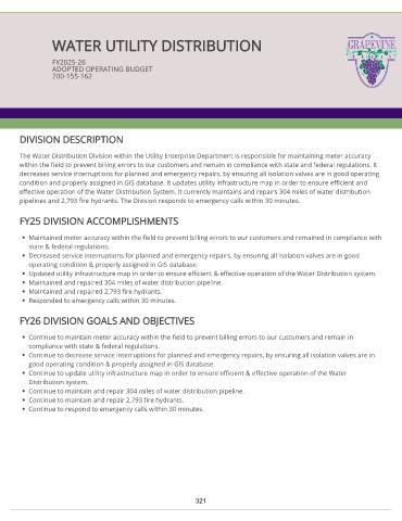 effective operation of the Water Distribution System. It currently maintains and repairs 304 miles of water distribution
