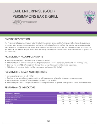 The Persimmons Restaurant Division within the Golf Department is responsible for improving food sales through menu