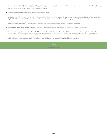 In 2012, Grapevine was named a World Festival and Event City by the International Festival and Events Association.