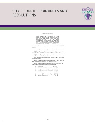 CITY COUNCIL ORDINANCES AND RESOLUTIONS 385