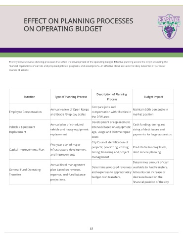 The City utilizes several planning processes that affect the development of the operating budget. Effective planning assists the City in assessing the