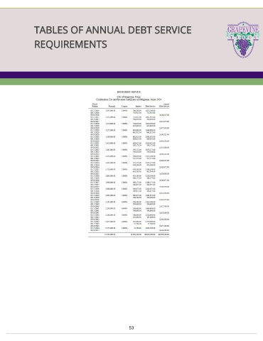 TABLES OF ANNUAL DEBT SERVICE REQUIREMENTS 53