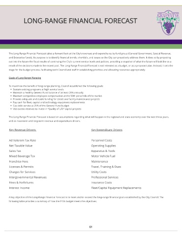 result of the decisions made in the recent past. The Long-Range Financial Forecast is not intended as a budget, or as a proposed plan. Instead, it sets the