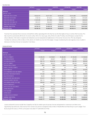 regulated by city ordinances. Total revenue from licenses and permits is budgeted at $2.2 million, $194,256 (9%) more than the prior year’s budget. Total