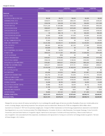 service, mowing charges, engineering inspection fees and parks and recreation fees. Revenues for FY26 are budgeted at $8.6 million which