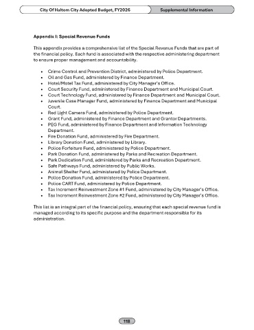 This appendix provides a comprehensive list of the Special Revenue Funds that are part of