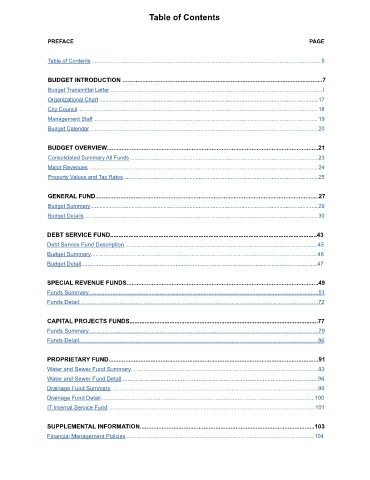 Water and Sewer Fund Detail .............................................................................................................................94