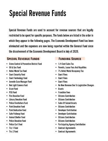 restricted to be spent for specific purposes. The funds below are listed in the order in