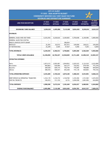 COMMUNITY SERVICES HALF CENT SALES TAX FUND