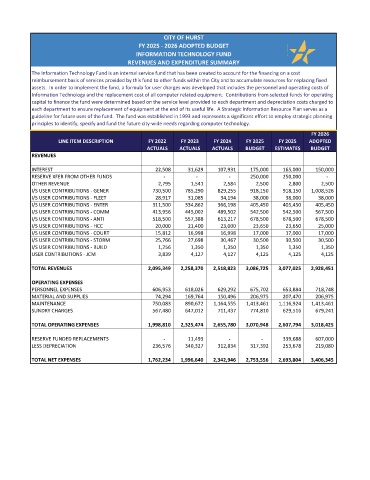 Information Technology and the replacement cost of all computer related equipment. Contributions from selected funds for operating