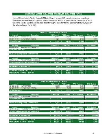 Each of these funds, Water Impact (61) and Sewer Impact (62), receive revenue from fees