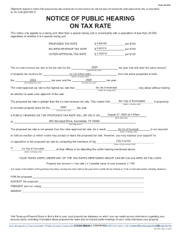 7KH SURSRVHG WD[ UDWH LV QRW JUHDWHU WKDQ WKH YRWHU DSSURYDO WD[ UDWH $V D UHVXOW the City of Kennedale LV QRW UHTXLUHG