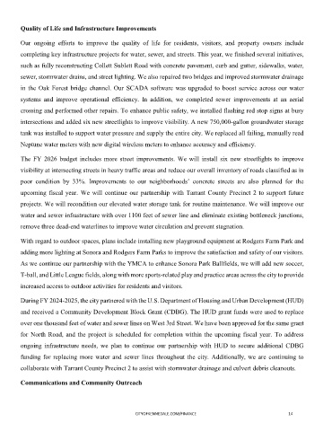 completing key infrastructure projects for water, sewer, and streets. This year, we finished several initiatives,