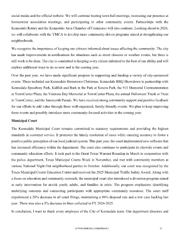the police department, Texas Municipal Courts Week in November, and met with community members at
